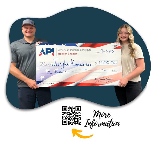 The Bakken Chapter of the American Petroleum Institute is a nonprofit organization comprised of service-oriented individuals who serve the local oil and gas industry, as well as the surrounding community. The Bakken API chapter provides scholarships for students pursuing a post- secondary education in a college, university or trade school.